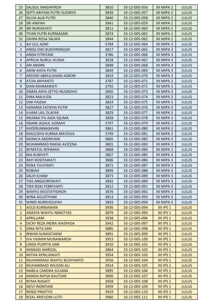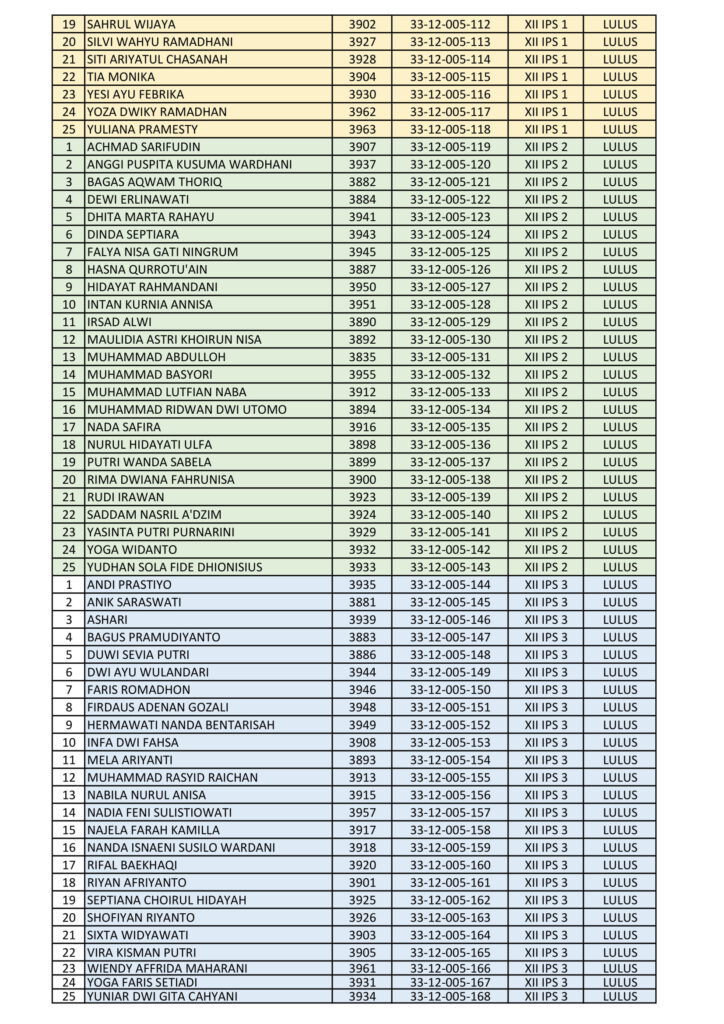 PENGUMUMAN KELULUSAN SISWA KELAS XII